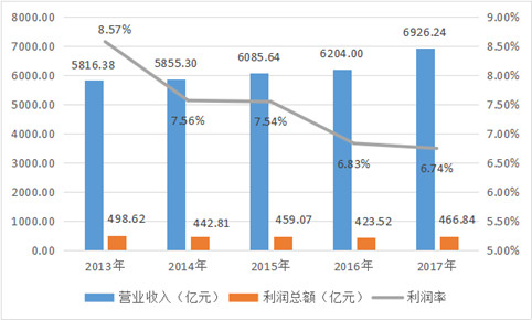 三好同學扒了一下:2013年,規模以上重點印刷企業的營收為5816.38億元,利潤總額為498.62億元,利潤率為8.57%。到2017年,營收增長19.08%,達到6926.24億元;利潤總額減少6.37%,降至466.84億元;利潤率少了1.83個百分點,為6.74%。