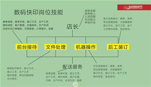 基于圖文快印行業是勞動密集型、碎片化、低附加值行業,不要“花無所謂的錢”來建立現代管理體系,門店日常工作只有兩個重點“一手抓員工”、“一手抓顧客”!尚品數碼快印獨特管理理念就是師徒制,這是把員工利益與公司發展結合,植入生產流程、生產標準、訂單管理、崗位對接的獨特的管理理念;不需要專門制度和流程來監督,成本也可大幅度降低。