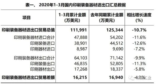 2020年1月—3月國內印刷、裝備器材進出口簡報