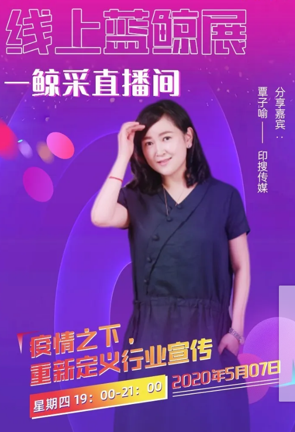 - 5月7日,2020年第二屆藍鯨 · 鯨采節在上海攬境展覽辦公室召開,上海印搜文化傳媒股份有限公司總經理覃子喻直播開講,主題為——《疫情之下,重新定義行業宣傳》,收獲眾多好評。