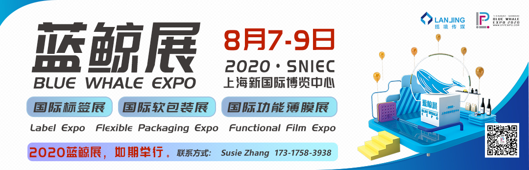 此外,由上海攬境展覽有限公司主辦的“第四屆藍鯨展”(國際標簽站、國際軟包裝展、國際功能薄膜展)將于2020年8月7日-9日在上海新國際博覽中心舉辦,值得關注!