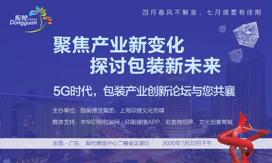 - 7月22日下午14時—17時,值勵華彩盒、瓦楞等六展盛大舉行之際,作為勵華展重要同期活動,由勵展博覽集團、印搜傳媒共同主辦的“聚焦產業新變化,探討包裝新未來——5G時代,包裝產業創新論壇與您共襄”,在廣東現代展覽中心二樓會議室G室舉行。