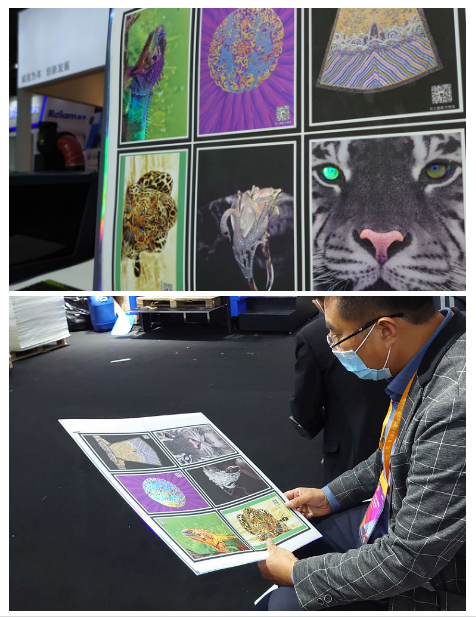 本次展會現(xiàn)場,KF518數(shù)字UV冷燙機和上一屆全印展展出的設備相比,其樣張越來越精美、技術越來越穩(wěn)定、工藝也越來越成熟,展位效果可用爆滿來形容。