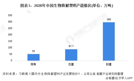 從“限塑令”到“禁塑令”,在政策層面都為生物降解塑料提供了發(fā)展契機(jī)。數(shù)據(jù)顯示,2020年,中國生物降解塑料產(chǎn)能規(guī)模約50萬噸/每年,同時(shí),還有87萬噸/年的在建產(chǎn)能及296萬噸/年的擬建產(chǎn)能等待釋放。