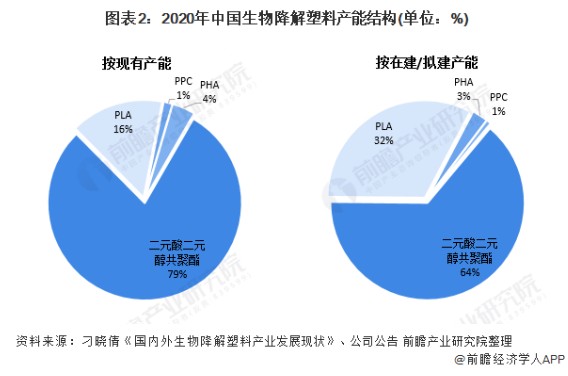 2、現(xiàn)有產(chǎn)能以PLA和二元酸二元醇共聚酯為主