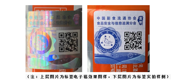 2021年11月,該協會啟動了“可追溯食品標簽”征集活動,共收到近30款征集方案,經過公開投票、專家評審等環節,選中以下標簽樣式作為“可追溯食品標簽”。該標簽由“中國副食流通協會食品安全與信息追溯分會”、可追溯食品標識、追溯二維碼三大主體部分和若干防偽技術點共同組成。采用普通紙和激光鐳射兩種材質,分為兩種規格,以適應不同類型和定位的可追溯食品使用。
