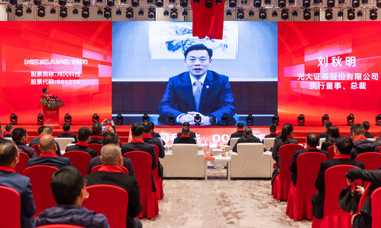 作為保薦機構的代表,光大證券股份有限公司執行董事、總裁劉秋明先生亦發表在線視頻致辭。他表示:“有幸同煒岡科技并肩經歷了發行上市的全過程,并對各中介機構、各輔助單位在給予煒岡科技上市過程中的幫助表示衷心感謝。自2018年展開合作以來,我們看到了公司管理層對行業的深入了解和卓越認知,深切感受到了煒岡科技的專業精神、戰略思維和前瞻眼光。希望煒岡科技能把握住資本市場的發展機會,不斷提升研發能力、運營能力,進一步鞏固煒岡科技在行業內的競爭優勢,以更先進的技術和產品邁向新臺階!”