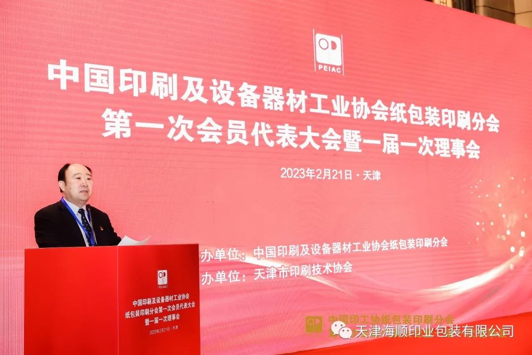 【CPP114】訊:2月21日上午,中國印工協紙包裝印刷協會第一次會員代表大會暨一屆一次理事會在天津富力萬達文華酒店隆重召開,來自全國各省市、地區的行業領袖和會員代表齊聚一堂,探討紙包裝行業現狀,展望行業前景,探尋合作機會。天津海順印業包裝有限公司(以下簡稱“海順”)黨支部書記袁汝海當選為中國印工協紙包裝印刷協會首任理事長,并在大會上發表了就職講話。