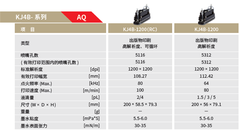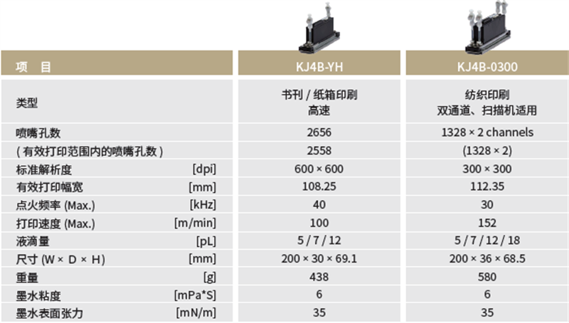 京瓷噴墨打印頭KJ4B(水性)系列規格