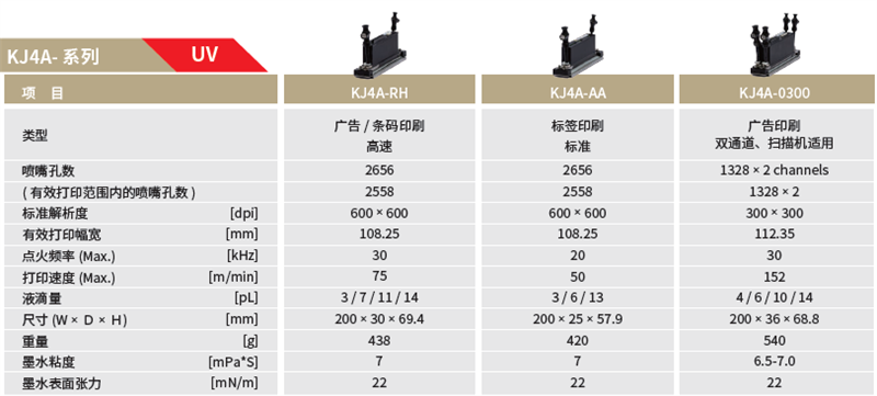 京瓷噴墨打印頭KJ4A(UV)系列規格
