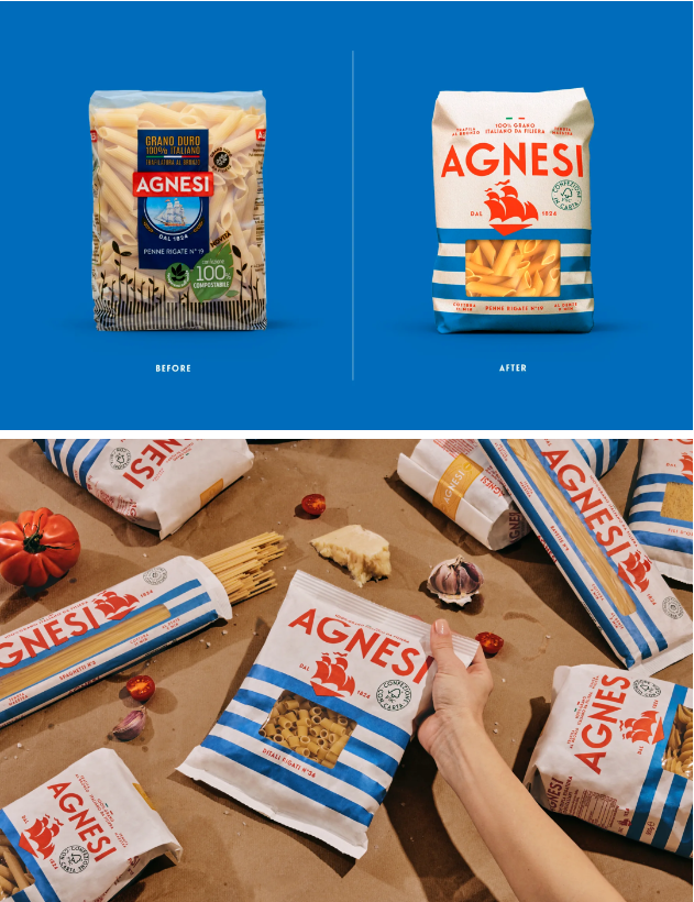 最知名的超市意大利面品牌之一Agnesi Pasta通過品牌視覺升級來慶祝其成立200周年。Dieline表示Agnesi的航海新外觀非常適合這家意大利公司悠久的傳統,同時兼具復古魅力,可以想象它出現在Wes Anderson的電影中。