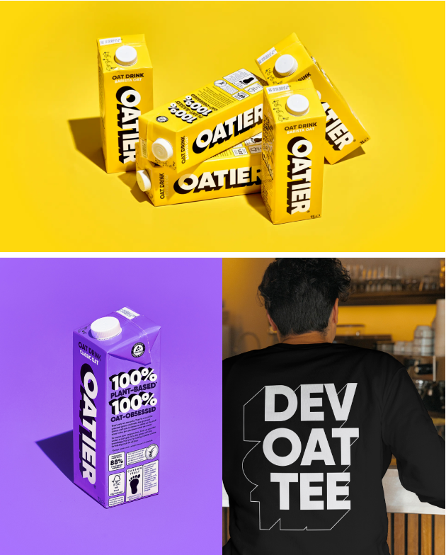 ALLGOOD為Oatier設計的包裝體現了大膽而充滿活力的風格。據ALLGOOD介紹,本次設計重點突出了Oatier采用100%愛爾蘭燕麥和秘密配方,泡沫更豐富,尤其是在咖啡中。徽標和排版方式采用大塊的下拉陰影,將徽標垂直排列在包裝上,有助于最大限度地利用空間,確保Oatier字樣盡可能突出并躍然于包裝之上,引人注目。