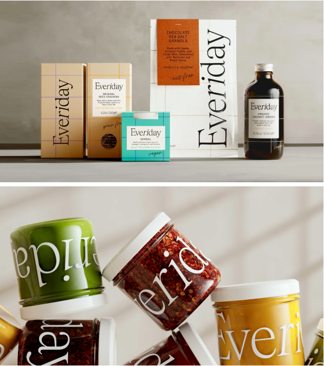 Everiday由營養師Rupani 與Midday工作室合作推出,這是一個強調“whole foods the whole time”的better-for-you主食品牌。Everiday的徽標采用了無襯線字體和楷書字體,使包裝看起來更優雅,更有人情味。