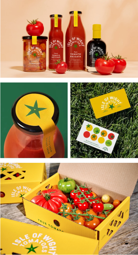 B&B為Isle of Wight Tomatoes進行的包裝設計突出了品牌的獨特賣點——Wight島獨特的氣候和風土。新品牌以“更多陽光,更多美味”的承諾為中心,強調該地區日照時間長,土壤肥沃,是種植番茄的理想之地。