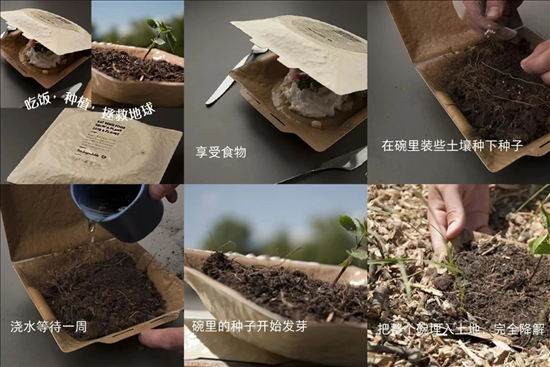 享受食物后,可以找到植物種子并種植。你還可以把整個碗種到地上!生物降解食品碗主打“‘科技+環保’”,通過將生物降解原料進行處理。注入模具中,干燥、熱壓整型而成,以形成食品碗的最終形狀。