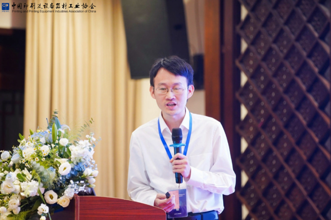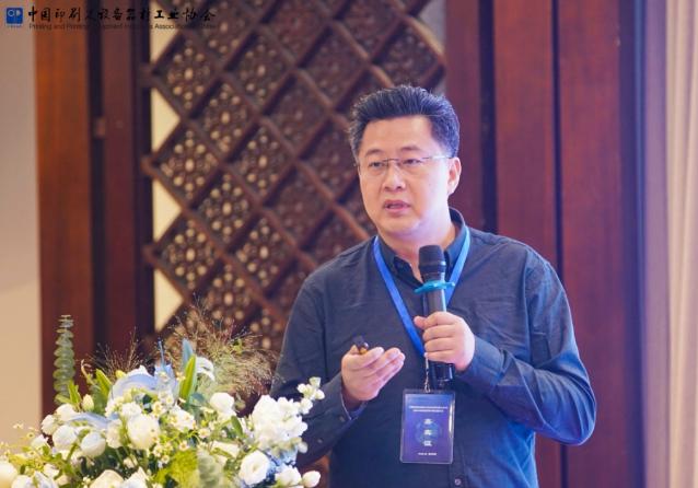 杭華油墨股份有限公司營業部副總監任悅先生以《色彩詮釋生活》為題,指出未來印刷油墨將面向高質量發展。他介紹道,杭華股份早在2006年就提出了“色彩詮釋生活(color for life)”的理念,旨在通過油墨在各式各樣的產品上詮釋出生活的理念、生活的態度、生活的需求。會議上,任悅介紹了杭華全新綠色產品矩陣,例如膠印油墨無礦物化、低遷移印刷油墨、全植物油MO-FREE油墨、商業用/輪轉用LED油墨等多個高性能、多樣化的產品系列。此外,針對印刷行業的痛點和需求,他亦展示了杭華股份最新的印刷技術和解決方案。