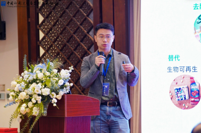 盛威科(上海)油墨有限公司技術顧睿先生以《從油墨和涂層推動可持續包裝》為題,介紹了盛威科通過CIRKIT CLEARPAIME UV E02不僅可為其CIRKIT產品組合增添了功能性涂層解決方案,這一技術為UV印刷不干膠標簽的安全、經濟脫墨提供了有效的解決方案,不僅提高了標簽塑料包裝的可回收性,還能回收適合在非食品包裝應用中重復使用的高質量回收物。據介紹,目前盛威科的循環涂層產品組合已經涵蓋了多種水性和溶劑型技術,如無PVC解決方案、NC基油墨等,可為用戶提供從針對液體、油脂、水蒸氣、氧氣和紫外線的阻隔涂層,到熱封和保護涂層,再到脫層和脫墨底涂全面覆蓋。