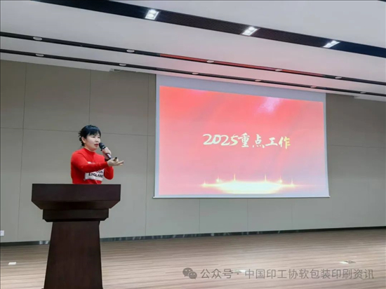 首先,由中國印刷及設備器材工業協會副秘書長王鳳娜介紹了兩個分支機構2024年的工作總結,并提出2025年的重點工作計劃。她指出,明年兩個分支機構將在組織行業企業參與展覽展示、申報獎項或者參評獎項、國內外交流、組織行業培訓等方面發力,積極推進軟包裝行業人才培養、自動化升級改造及綠色環保高質量發展。