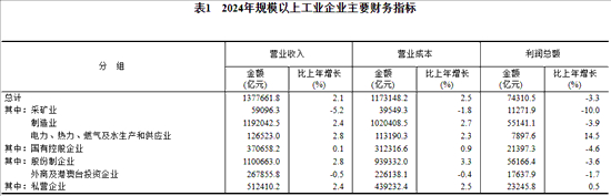2024年,規模以上工業企業每百元營業收入中的成本為85.16元,比上年增加0.36元:每百元營業收入中的費用為8.59元,比上年減少0.01元。