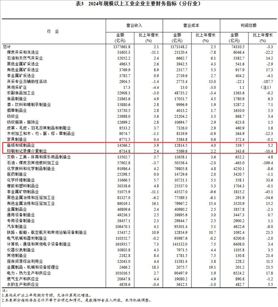 值得關注的是,2024年全年造紙和紙制品業實現營業收入14566.2億元,比上年增長3.9%;實現利潤總額519.7億元,比上年增長5.2%。