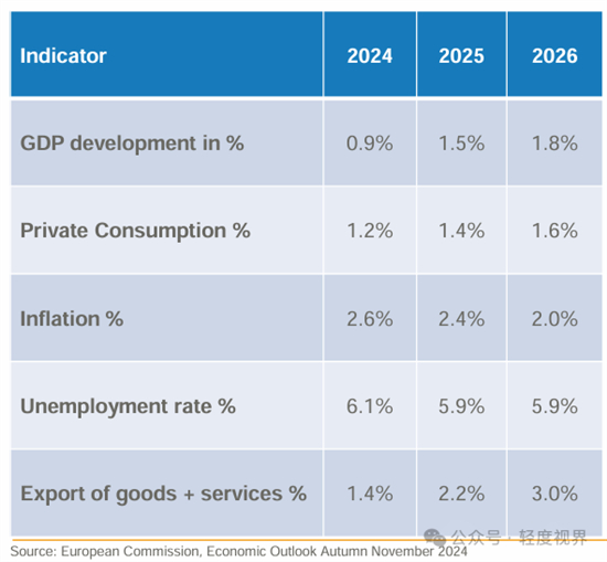 歐盟經濟展望方面,2024年GDP增長預計為0.9%,2025年為1.5%,2026年達到1.8%。私人消費、出口和通脹數據均顯示逐步改善趨勢,但各國表現不一,其中德國2024年預計萎縮0.1%,而西班牙和波蘭增長強勁,預計達3.0%。