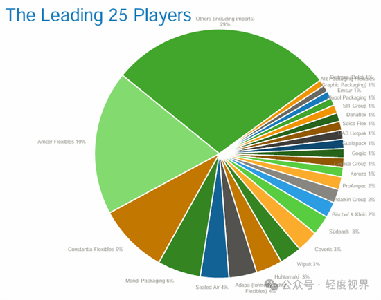 行業(yè)集中度方面,安姆科軟包裝(Amcor Flexibles)以19%的市場份額領先,康斯坦提亞軟包裝(Constantia Flexibles)和蒙迪包裝(Mondi Packaging)分別占9%和6%。