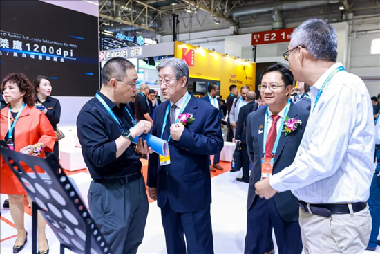 ▲中國印刷技術(shù)協(xié)會理事長劉曉凱一行蒞臨展臺