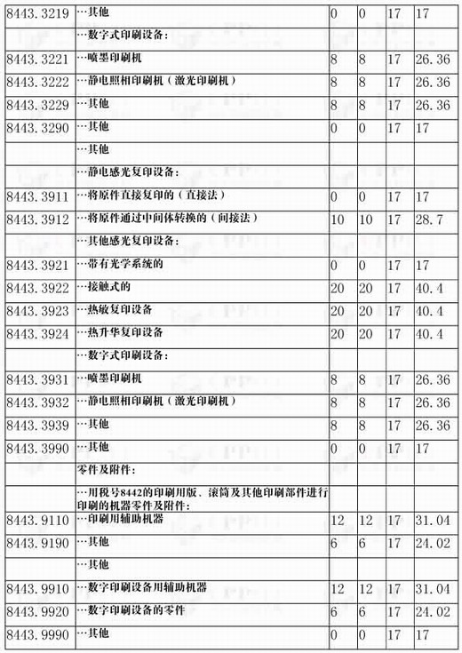 2008年進(jìn)口印刷設(shè)備的稅則內(nèi)容和變化
